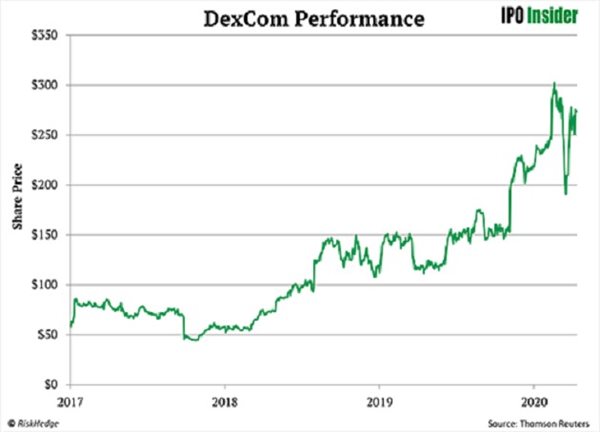 Here’s Dexcom (DXCM), which makes glucose monitoring systems: