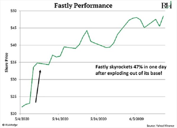 Now, collecting 47% gains in one day is not typical. But it is possible if you hunt for stocks that’ve carved out strong bases. And as you can see, Fastly didn’t stop there.
