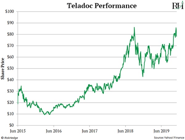That’s a tremendous run. But Teladoc is likely just getting started. According to a recent Harris poll, only about 8% of Americans have tried telemedicine. This will absolutely change. Within just a few years, visiting the doctor for minor illnesses will be a thing of the past.