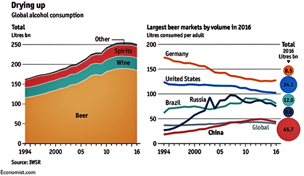 The alcohol industry is hedging its bets for good reason. Global alcohol consumption has been stagnating for years.