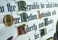 The original version of the Pledge of Allegiance without the phrase 'under god' is displayed during a protest March 24, 2004 outside of the Ninth Circuit Court of Appeals in San Francisco. (Justin Sullivan/Getty Images)