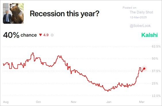 “Goldman Sachs and Moody’s Analytics in recent days joined forecasters raising alarm about the increased likelihood of an economic downturn. The warnings coincided with a market plunge touched off by U.S. tariffs against Canada, Mexico, and China, some of which were delayed. Retaliatory tariffs issued by China on Monday deepened a trade war between the world’s two largest economies.” – ABC News