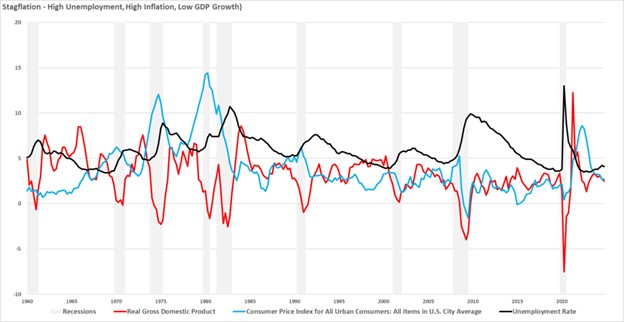 “The stagflation of the late 1970s was one of the most challenging economic periods in U.S. history, marked by the unusual combination of high inflation, high unemployment, and slow economic growth. Unlike typical recessions where inflation and unemployment move in opposite directions, stagflation presented a unique challenge.”