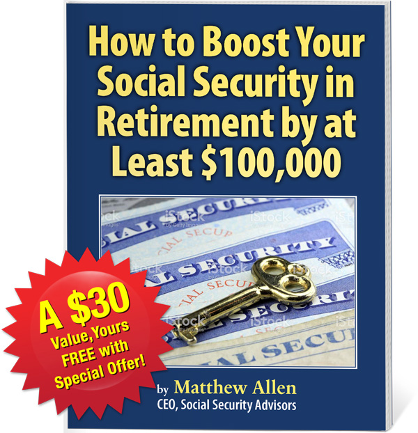 It’s written by America’s leading Social Security expert, Matthew Allen. Since 2008, he has helped thousands of Americans collect many millions of dollars more in additional Social Security benefits. His average client collects $120,000 MORE using these strategies!