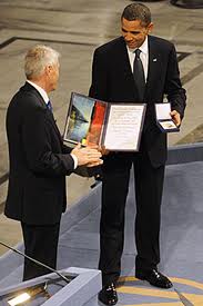 | President Barack Obama receives the Nobel Peace Prize in December 2009. (Getty Images Photo) |