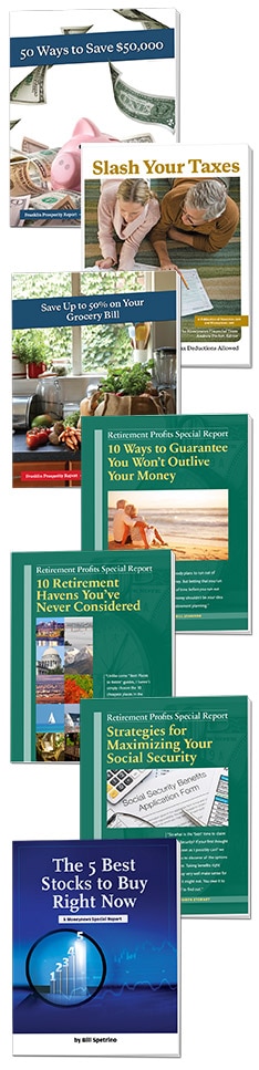 Retirement Profits (normally $79.95 per year): This 12-page monthly newsletter will give you guidance to make your retirement the most exciting time of your life . . . whether you are years away from retirement, starting retirement, or well into your retirement. It even has an “Income Portfolio” as well as a “Catch-Up Portfolio” to help you make more money in your retirement than you ever made before your retirement!