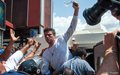 Defying a ban, thousands of Lopez's supporters turned out dressed in white at the Plaza Brion after he called the march in a video message on Sunday, pledging to turn himself in if the government sought to arrest him.