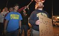 Garrett Plath, right, holds a sign and Toni Zagami, left, wears a "Boston Strong" shirt as they stand outside the Dyer-Lake Funeral Home in North Attleborough, Mass., where a vehicle believed to be carrying the body of Boston Marathon bombing suspect Tamerlan Tsarnaev arrived on May 2. About 15 people from the area stood outside the funeral home in protest.