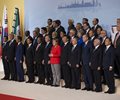 French President Emmanuel Macron forced his way through the crowd of other world leaders at the G-20 summit Friday to take up position next to President Donald Trump during the group photo.