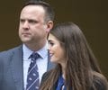 Republican presidential candidate Donald Trump's campaign communications manager Hope Hicks and Daniel Scavino Jr., Director for Social Media for Trump Campaign walk to their motorcade vehicle after Trump's visit to Jones Day's D.C. law offices in Washington, May 12, 2016. (AP Photo/Pablo Martinez Monsivais, File)