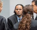 Ahmad al-Faqi al-Mahdi appears at the international criminal court in The Hague, Netherlands on Aug. 22 at the start of his trial on charges of involvement in the destruction of historic mausoleums in Timbuktu during Mali's 2012 conflict. (Patrick Post/Pool/Reuters)