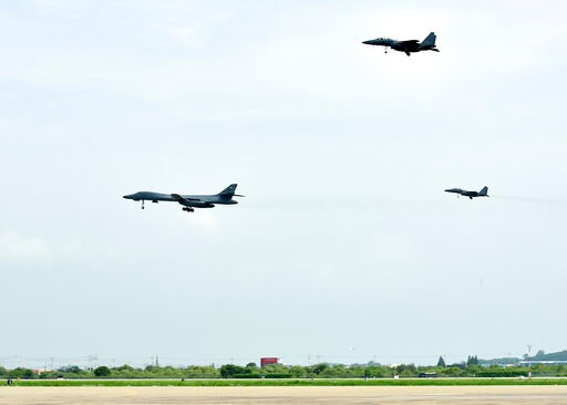 The U.S. Pacific Air Forces said in a statement the B-1 bombers were escorted by South Korean fighter jets as they performed a low-pass on Sunday over an air base near the South Korean capital of Seoul before returning to Andersen Air Force Base in Guam.