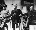 Roosevelt’s service chiefs told him that if the atomic bomb was not successful, Japan would have to be subdued in an amphibious landing, and as many as a million Allied casualties would result (the Americans would take nearly 80,000 casualties at Iwo Jima and Okinawa alone). Accordingly, they urged him to obtain Soviet participation in the Japanese war to absorb some of the casualties. Stalin was going to take what he wanted from the Japanese anyway. Stalin did agree to enter the war against Japan three months after the end of the war with Germany, and did so. Stalin also agreed to participate in the United Nations Organization, which Roosevelt intended as a means of disguising by collegialization the post-war domination of the world by the chief victorious powers, and as a method of sugar-coating the defeat of the domestic isolationists by making the world seem less dangerous than they had feared. At the Yalta Conference, Churchill and Roosevelt also obtained Stalin’s agreement on the Declarations on Poland and Liberated Europe, which assured their liberation, independence, and democratic selection of government.