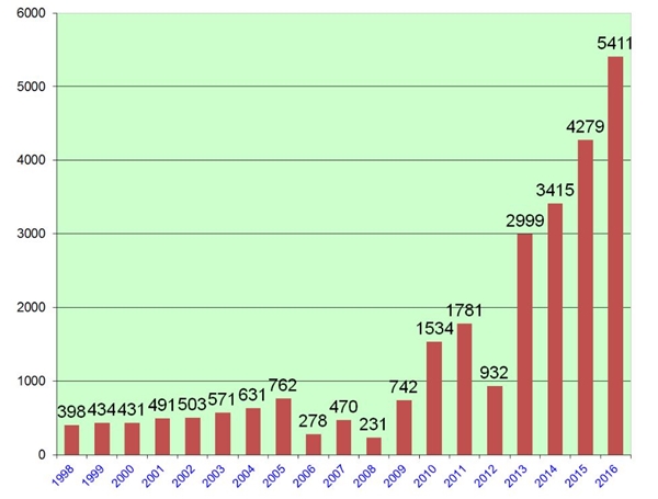 Since Fatca came into being, annual totals for Americans renouncing citizenship have reached their four highest historic levels, as shown in the chart below from Andrew Mitchel LLC and its International Tax Blog.