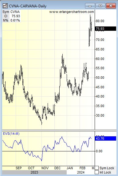 Back on October 4th, we listed the biggest winners for the year. Top of the list was Carvana up 786% at a price of $38.21. Almost five months later the stock is now at $76.12, almost a 100% gain since October!