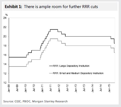 The central bank of China (People’s Bank of China , or PBoC) cut its reserve requirement ratio (RRR), which is the amount of reserves banks must hold at the PBoC, by 1 percent (expectations were 0.5 percent) to 18.5 percent, which was the largest cut since the financial crisis in 2008, because economic growth expanded much less than expected and the planned annualized quarterly