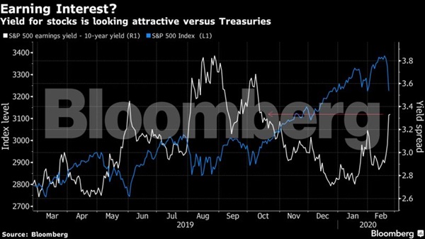 For one thing, the S&P 500’s earning yield -- profit relative to share price -- is more than 3 percentage points higher than the 10-year yield, the highest since October and way above its historic average in a valuation method known as the Fed model. For some, that’s a signal the share index is poised to climb as investors take advantage.