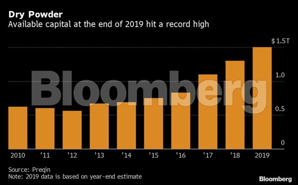 Private equity firms are ready to pounce in 2020, armed with a record level of cash.