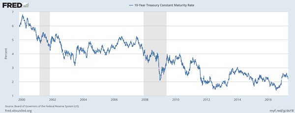 Credit spreads widened about 12 basis points over the last two weeks but are still low. I suspect the junk bond market is no longer as sensitive to oil prices as it was prior to the shale shakeout but there are plenty of other sectors to worry about. One area of the economy where growth hasn’t been a problem is in the issuance of debt, especially the corporate variety. Investment grade corporate debt issuance hit a 6th consecutive annual record in 2016.