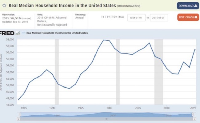 So this chart reflects the fact that life has gotten much more difficult for average Americans. If people’s incomes haven’t grown beyond what they were 30 years ago, they struggle just to make ends meet and to maintain the lifestyle they had.