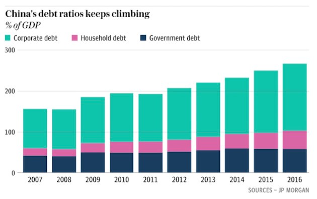 Chinese growth has been fueled by a near doubling of both GDP and debt over the last nine years: