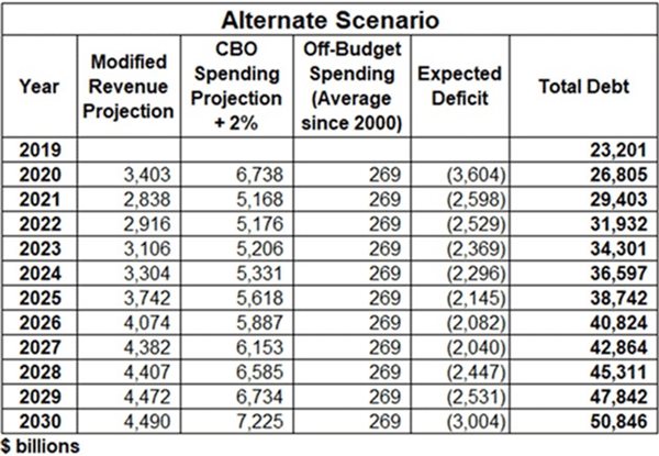 I added in off-budget debt at its $269 billion yearly average. But now, USdebtclock.org projects off-budget deficit will rise by over $1 trillion this year.