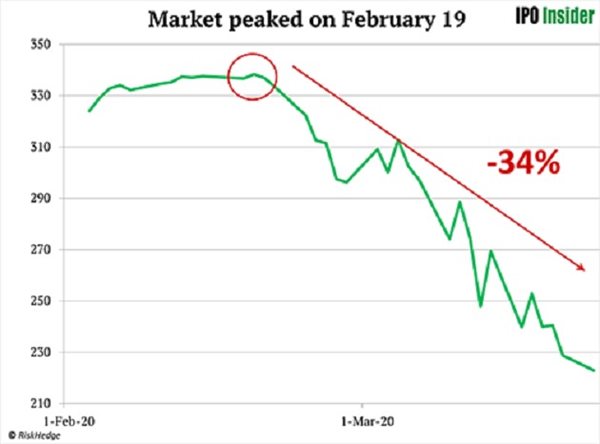 The next morning all hell broke loose. The S&P 500 began a 34% plunge. This set a new record for the fastest 30% decline in the history of the US stock market.