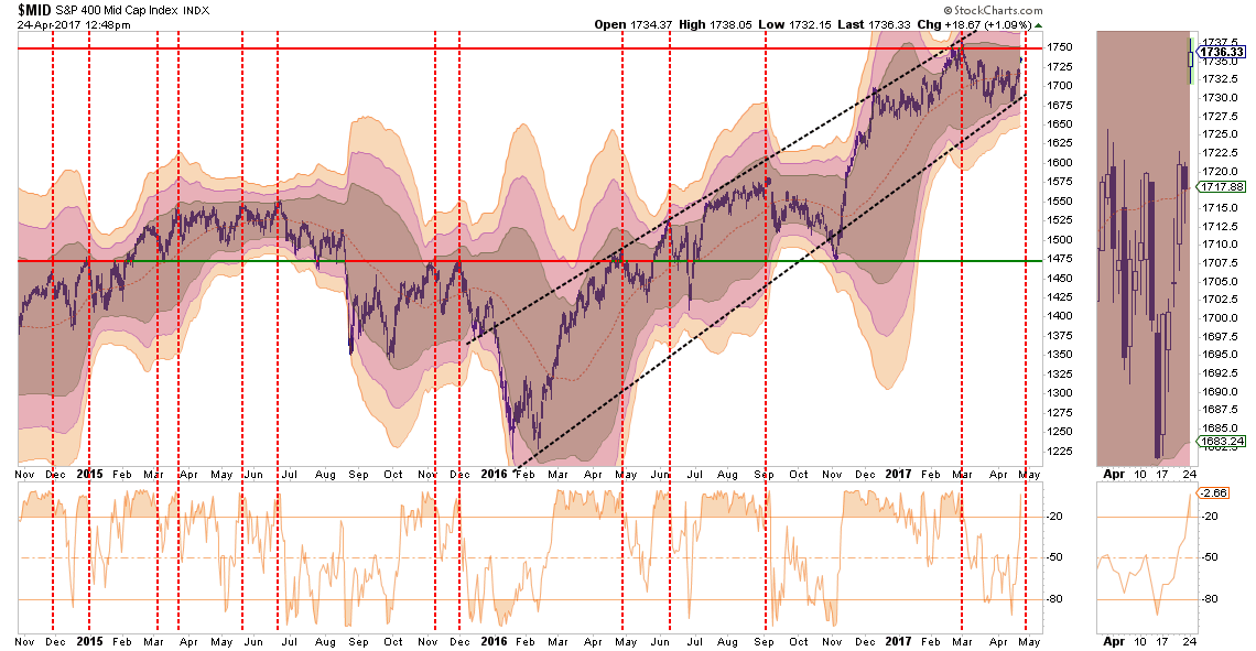 As we wrap up the month of April, we now begin the march into the seasonally weaker period of the year. Therefore, there is a higher probability the current rally could fail given the ongoing debates in Washington over the debt ceiling, tax cut and infrastructure spending plans.