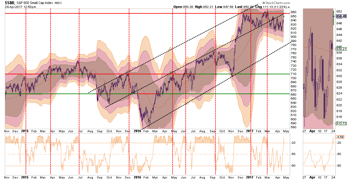 Small cap stocks went from underperforming the broader market to exploding following the Trump election. However, as of late, that performance has stalled and the sector has lagged the broader S&P 500 index.