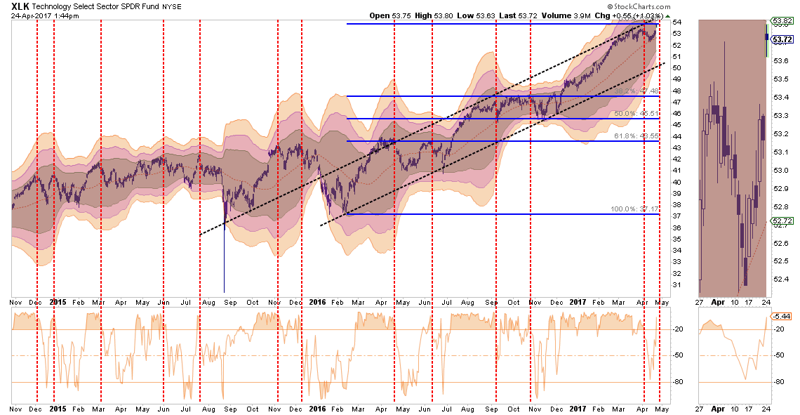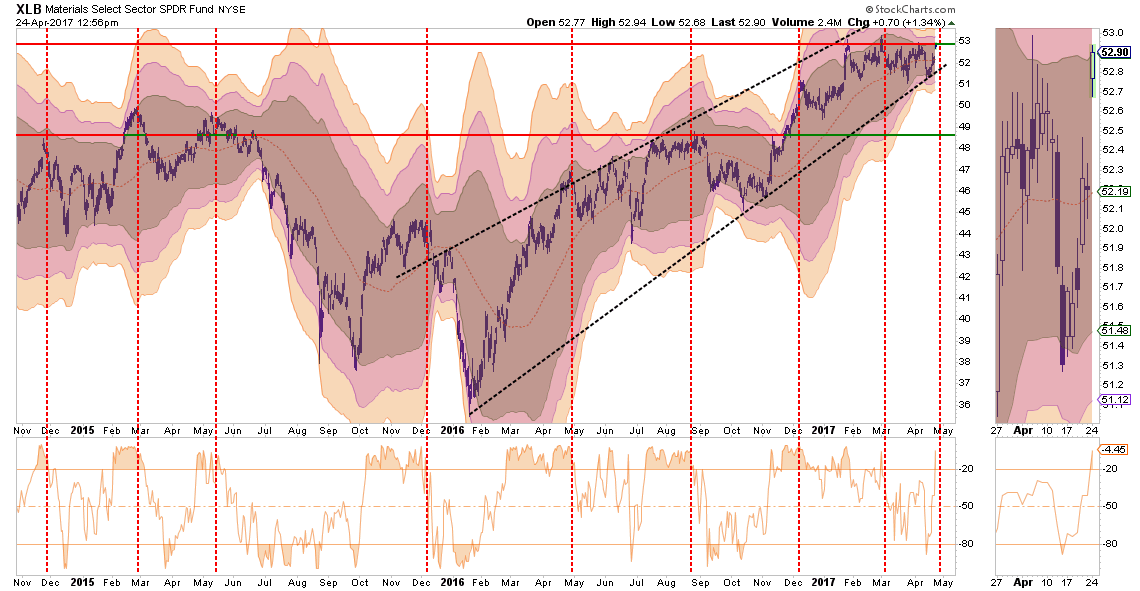 As with Industrials, the same message holds for Basic Materials, which are also a beneficiary of the dividend / “Make America Great Again” chase. This sector should also be reduced back to portfolio weight for now with stops set at the lower support lines $51.00.
