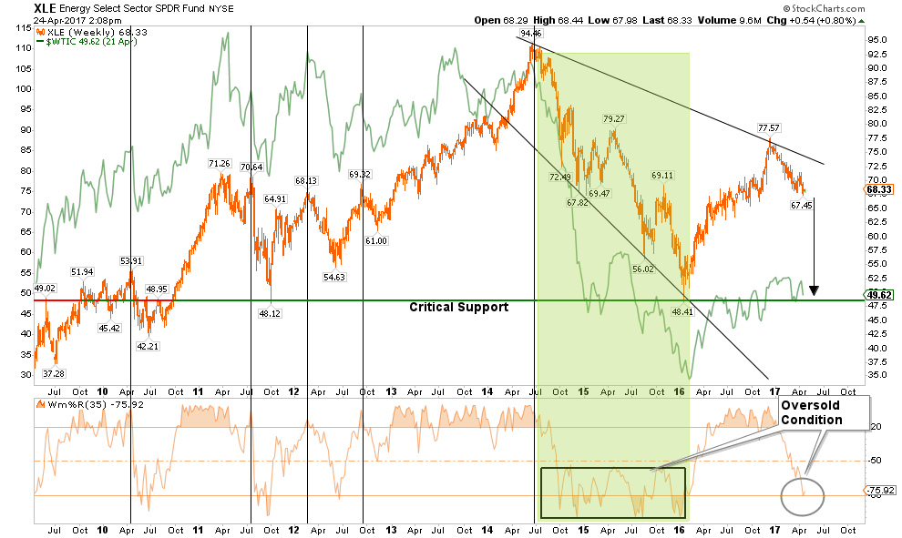 However, the recent test of $48/bbl support provides a support level currently, but a break of that level will likely see oil sliding back to the low 40’s. While energy-related earnings have helped the overall S&P 500 earnings rebound over the last quarter, it is likely transient and forward earnings estimates will likely have to be ratcheted down rather sharply for the rest of the year.