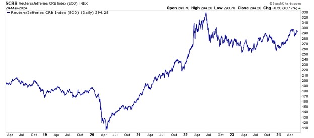 Furthermore, Wall Street itself is a factor. Prices of commodities are controlled by traders on the New York Mercantile Exchange. Those traders look for opportunities to place bets on commodities based on many events that could impact supply, such as weather, transportation disruptions, or geopolitical conflicts. Take a look at the commodity index below.