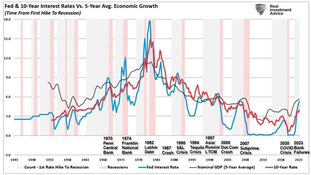 With consumers under pressure from higher interest rates, tighter lending standards, and slowing economic growth rates, the risk of doing too much is rising. Since 1980, the financial landscape has been littered with the carcasses of monetary policy miscalculations.