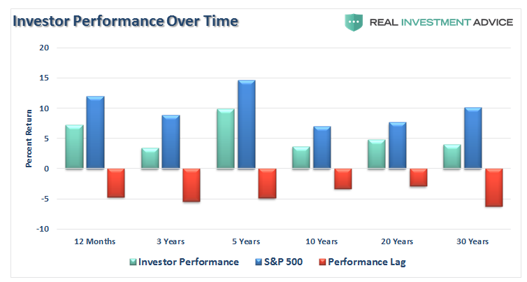 While we previously covered the impact of market cycles, the importance of limiting losses, the role of starting valuations, and the proper way to think about benchmarking your portfolio, the two biggest factors which lead to chronic investor underperformance over time are: