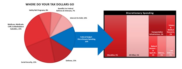 According to the Center On Budget & Policy Priorities, in 2023, roughly 90% of every tax dollar went to non-productive spending.