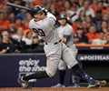 New York Yankees center fielder Aaron Judge (99) flys out during the eighth inning in Game 2 of baseball's American League Championship Series between the Houston Astros and the New York Yankees, Oct. 20, 2022, in Houston. (Eric Gay/AP)