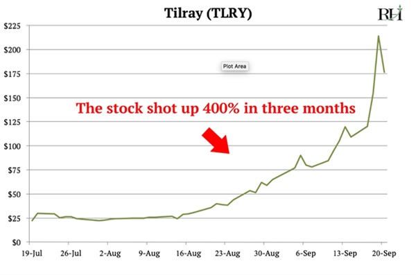 Canadian marijuana grower Tilray (TLRY) shot up 400% in less than three months last year:
