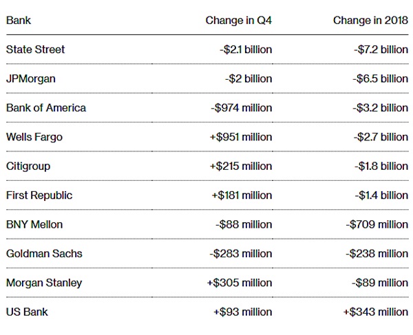 State Street Corp., JPMorgan Chase & Co., Bank of America Corp. and Goldman Sachs Group Inc. together reduced their holdings of municipal debt during the fourth quarter by $5 billion, according to filings with the Securities and Exchange Commission. While some, including Wells Fargo & Co. and Citigroup Inc., stepped up their purchases at the end of the year, it wasn’t enough to make up for the cutbacks by other lenders.