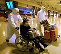 Workers wearing protective masks and suits help a Chinese traveller who tested positive for COVID-19 leave Rome Fiumicino International Airport, Dec. 29, 2022. (Filippo Monteforte/Getty Images)