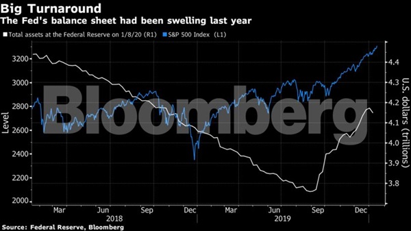 Skeptics say equating quantitative easing with the current program, where the Fed buys short-term debt, is extreme, as is believing that $60 billion worth of monthly Treasury bill purchases (and sundry other stimulus) holds sway over the direction of a $30 trillion U.S. stock market. Nevertheless, the wind-down of monthly purchases is the biggest risk facing investors face in 2020, strategists at John Hancock Investment Management said in December.