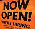 A "We're Hiring!" hiring sign adorns the storefront of a seasonal shop at Thornton Premium Outlets in Thornton, Colo. (David Zalubowski/AP)