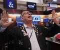 Trader Jonathan Mueller shouts to one of his colleagues as he works on the floor of the New York Stock Exchange, Jan. 21, 2026. (Richard Drew/AP)
