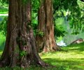 The Four Guardsmen, a group of trees that form a natural entryway on the road to the forest, were successfully protected from the KNP Complex fire by the removal of nearby vegetation and by wrapping fire-resistant material around the bases of the trees, the firefighting management team said in a statement Sunday.