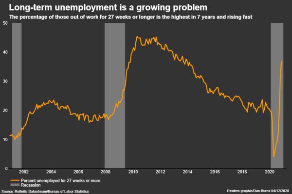 In February, just before the coronavirus pandemic broadsided the economy and job market along with it, fewer than 20% of the 5.8 million people then counted as unemployed had been out of work for 27 weeks or longer.