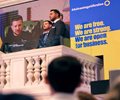 Zelenskyy appeared on a video screen behind the platform overlooking the NYSE floor where the opening bell is traditionally rung. Traders applauded and whooped while a banner read: "We are free. We are strong. We are open for business."
