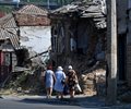 Outside the city centre, there are quiet roads with houses gutted by the fighting.