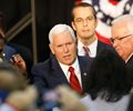 Vice President Mike Pence visited FEMA headquarters in Washington Saturday for a briefing on relief efforts in Puerto Rico and the U.S. Virgin Islands, later tweeting that he was "proud of our team and all first responders."