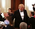 Trump welcomed 46 governors and their spouses to the annual Governors' Ball at the White House, the first major social event of his administration. The president congratulated first lady Melania Trump on the elegant candle-lit event in the State Dining Room, telling the audience, "The room, they say, has never looked better, but who knows."