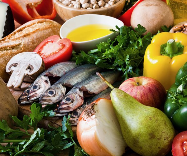 A Mediterranean diet also features lower consumption of red meat and alcohol.
