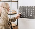 older man looking at calendar in confusion